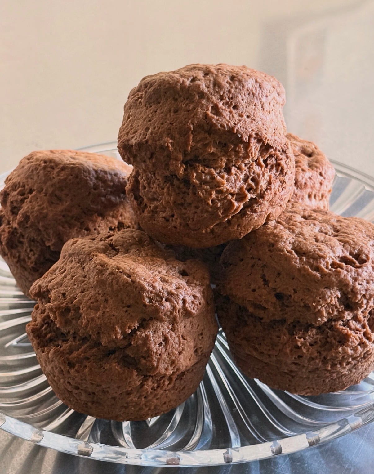 ココアパウダーを使わずチョコレートクリーム100%練り込み繋ぎ合わせた生地をマフィン型に入れて焼き上げています。